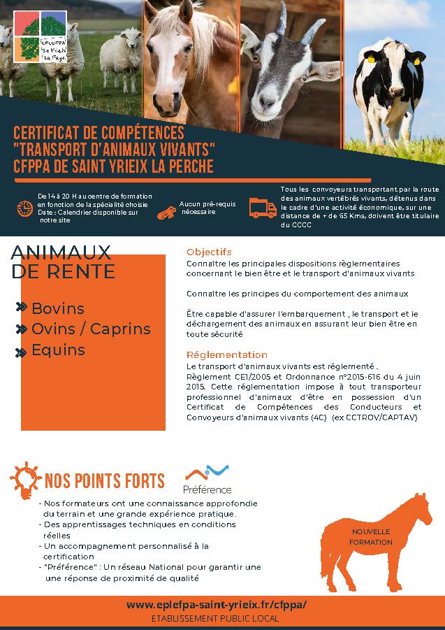 Inscription sur demande au 0555083788 ou cfppa.st-yrieix@educagri.fr